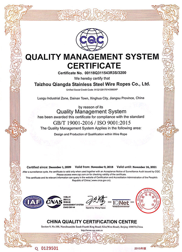 泰州市強達不銹鋼絲繩有限公司位于江蘇興化市戴南經(jīng)濟開發(fā)區(qū),公司致力于不銹鋼絲繩產(chǎn)品生產(chǎn),立志成為“國內(nèi)技術標桿型吊索具生產(chǎn)企業(yè)”。以此戰(zhàn)略思想指導,公司堅決貫徹“質(zhì)量贏市場,管理增效益,誠信贏天下”的質(zhì)量方針。以完善的服務在國內(nèi)不銹鋼絲繩市場樹立良好的品牌形象。公司榮獲“江蘇省質(zhì)量信得過企業(yè)。 靈活的管理機制,經(jīng)驗豐富的